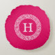 Raspberry Wht Greek Key Rnd Frame Initial Monogram Round Cushion