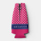 Raspberry Wht Polka Dot CB Navy Name Monogram Bottle Cooler
