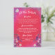 Vibrant, hand drawn raspberry pink design with wildflowers - Wedding RSVP card vertical