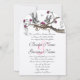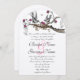 Vintage Love Bird Wedding Invitations. Deep Raspberry Mulled Wine blossoms on a grey branch for a rustic romantic feel.