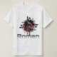 The image shows a man wearing a white T-shirt with a design featuring a wrestler or fighter in a dynamic pose. The design includes a black splatter effect around the image and the word "Roman" written in a bold, futuristic font below the graphic. This likely refers to a well-known wrestler. Let me know if you need more details or modifications!