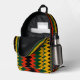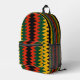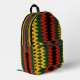 The Rasta Colours Chevron Design features the key colours red, golden yellow, and green in sharp zig-zaggy chevron stripes on a black background. A unique look you won't find anywhere else. When this design is added to a backpack, it is the height of cool, functional Boho fashion. Great for a high school or college student.