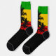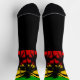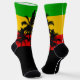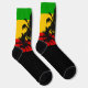 Rasta flag coloured striped socks with black tropical palm tree silhouettes