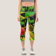 Rasta Reggae Party High Waisted Capri leggings. Great for Yoga or a workout. Vivid all over print design in the Rasta colours with Jamaican and Reggae symbology.