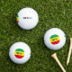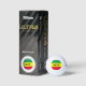 Rastafari flag golf ball set with custom text. Personalised golfer gifts.