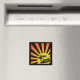 Hand drawn rat rod sunset magnet.