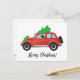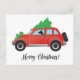 Rat Terrier Dog Driving a Christmas Car Holiday Postcard