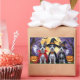 A playful Halloween scene featuring a mischievous little pup peeking out of a carved pumpkin, surrounded by spooky-fun fall vibes. With cheeky charm and autumn colours, it’s the perfect touch of humour for the season.