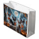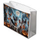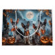 Unleash the spooky spirit with this eerie Halloween design featuring a pack of dogs under a dark, moonlit sky, surrounded by flying bats and glowing pumpkins. Perfect for those who love a touch of frightful fun with their furry friends!