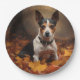 Rat Terrier in Autumn Leaves Fall Inspire Paper Plate
