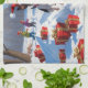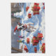 Rat Terrier Running in Snow with Christmas Hat Tea Towel