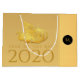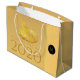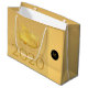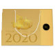 Elegant design with golden paper-cut of a rat with fruits (+ the same paper-cut in grey forming drop shadow. Design on large gift bag with Large 2020, Year of the Rat and monogram onto black round + same background image in back. You can easily change text (font, colour, size and position) by clicking the customise button. Matching greeting card and more.