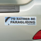 On the road or at the lot, be the envy of the other wingless bipeds, reminding them of how much cooler your choice of recreation is compared to theirs, with this airy bumper sticker. "I'd Rather Be Paragliding" w/PG outline on blue sky background.