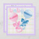 Baby rattles in pink and blue on pastel plaid with lavender lace border - Baby Gender Reveal Party Invitation, come to the newest type of baby shower- and find out the gender of the new baby along with mum and dad - customise this baby shower invitation - Note: no real lace on this invitation, this is digitally created only _ Baby not included