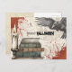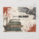 Personalise this Halloween inspired postcard for Halloween. Raven in flight appears in the upper right-hand corner and appears to hover over a lit candle with antique books. Enjoy spooky season!