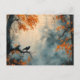 Baroque-style oil painting of a raven perched on a branch in a misty autumn forest.