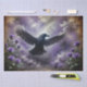 A majestic raven spreads its wings amid a dreamlike, misty landscape surrounded by deep violet roses. A perfect design for gothic, fantasy, or mystical-themed decoupage projects.
