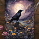 This enchanting watercolor painting features a raven silhouetted against a glowing full moon, surrounded by delicate wildflowers in soft watercolor hues. The dreamy, mystical atmosphere blends the beauty of nature with an ethereal nighttime scene, perfect for lovers of gothic and celestial art.