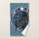 A tribal revenue sitting in a circle of stars and moon phases all drawn in an art nouveau style in a backdrop of blues and purple.