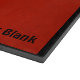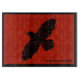 A simple, black silhouette of a Raven (Corvus corax) on a red, leather-look background image. The raven image has been given a slight "rough" or "worn" effect. Add your own text.