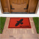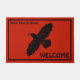 A simple, black silhouette of a Raven (Corvus corax) on a red background. The raven image has been given a slight "rough" or "worn" effect. Customisable text reading, " WELCOME" also appears and there is an additional place for you to add your own text.