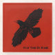 A simple, black silhouette of a Raven (Corvus corax) on a red, leather-look background image. The raven image has been given a slight "rough" or "worn" effect. Add your own text.
