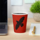 A simple, black silhouette of a Raven (Corvus corax) on a red, leather-look background image. The raven image has been given a slight "rough" or "worn" effect. Add your own text on the reverse side.
