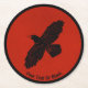 A simple, black silhouette of a Raven (Corvus corax) on a red, leather-look background image. The raven image has been given a slight "rough" or "worn" effect. Add your own text.