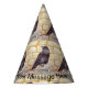 A Raven perched on stone at the Tower of London adorns this fun Halloween party hat! Reference photo by Gustav Sommer on Pixabay.