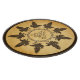 Nine lively ravens (Corvus corax) circle around a knotted Norse/Celtic ring. A triquetra, a triangular figure of three interlaced arcs, appears at centre. Everything is superimposed on an old paper background image, giving it a mediaeval feel. You may change the colour of the border ring or remove it altogether.