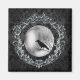 A raven under a full moon on an ornate damask background.