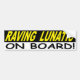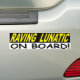 RAVING LUNATIC ON BOARD BUMPER STICKER