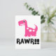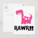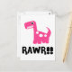 Cute (and goofy) pink dinosaur with spots. Text below reads, Rawr!! This is too cute for any dinosaur fans.