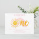 Celebrate a little ray of sunshine turning one with this sweet and minimal first birthday invitation. Featuring a soft watercolor rainbow and sunshine design in warm yellow and blush pink tones, this invitation is perfect for a cheerful, modern birthday celebration.