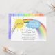 A Little ray of sunshine baby shower invitation featuring the cutest smiling sun with a rainbow for a neutral baby shower. Flip our invite over to view a watercolor rainbow back for an extra special touch