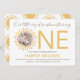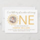 An Our little ray of sunshine is turning one first baby birthday invitation. This sun-themed invitation is yellow and white with the word "One" in large letters with your baby’s photo in the first letter of the word. Simply, customise this invitation, add it to your cart, and happy birthday to your wonderful baby!