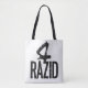 A modern tote bag featuring a bold brush-style typography design by RAZID.
