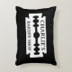 Razor blade logo barber shop decor accent pillow. Custom cushion design for men's hair salon. Stylish gift for hair salon owner. Make your own trendy barber shop decorations for boss, coworker, employees etc. Unique hair stylist gift ideas. Personalised with your own business name or company slogan.