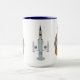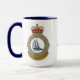 High quality 15 oz ceramic mug featuring the crests of 434 Squadron and RCAF 3 Wing, and a top view of an iconic CF-104 from the 1962-65 period. Interior and handle of mug are cobalt blue.