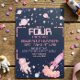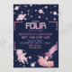 Reach Four the Stars Pink Purple Space 4th Birthday Invitation