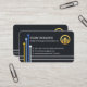 A dark blue cover is accentuated by four vertical orbits moving upwards to your success. At the top of this is your prestigious name, the business name and a gold global logo. Near the base of the card are the contact details in their respective bullets.