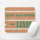 Green stenciled graffiti on a brick wall counsels us to "always read between the lines"
