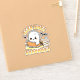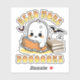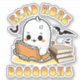 Colourful cute Halloween "Read more boooooks" text design with cute, funny, smiley ghost reading a book decoration