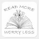 Read More Worry Less. A reading quote design for book lovers! This design feature the words "Read More Worry Less" in a cute black font together a cute wild flowers book silhouette.
