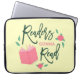 Perfect for book lovers, this laptop sleeve features the words "Readers Gonna Read" surrounded by an opened book, roses and leaves against a light yellow background.