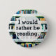 I would rather be reading. Ain't that the truth... A colourful digital watercolor painting of a bookshelf--the perfect background for this customisable pin.