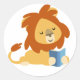 Reading Cartoon Lion round sticker