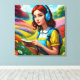Reading Girl With Headphones Colourful Landscape Canvas Print