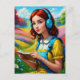 Immerse yourself in the vibrant world of this Colourful Landscape Digital Art featuring a reading girl with headphones. A captivating blend of art and technology, perfect for adding a splash of colour to any space.