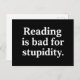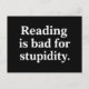 Reading is bad for stupidity postcard